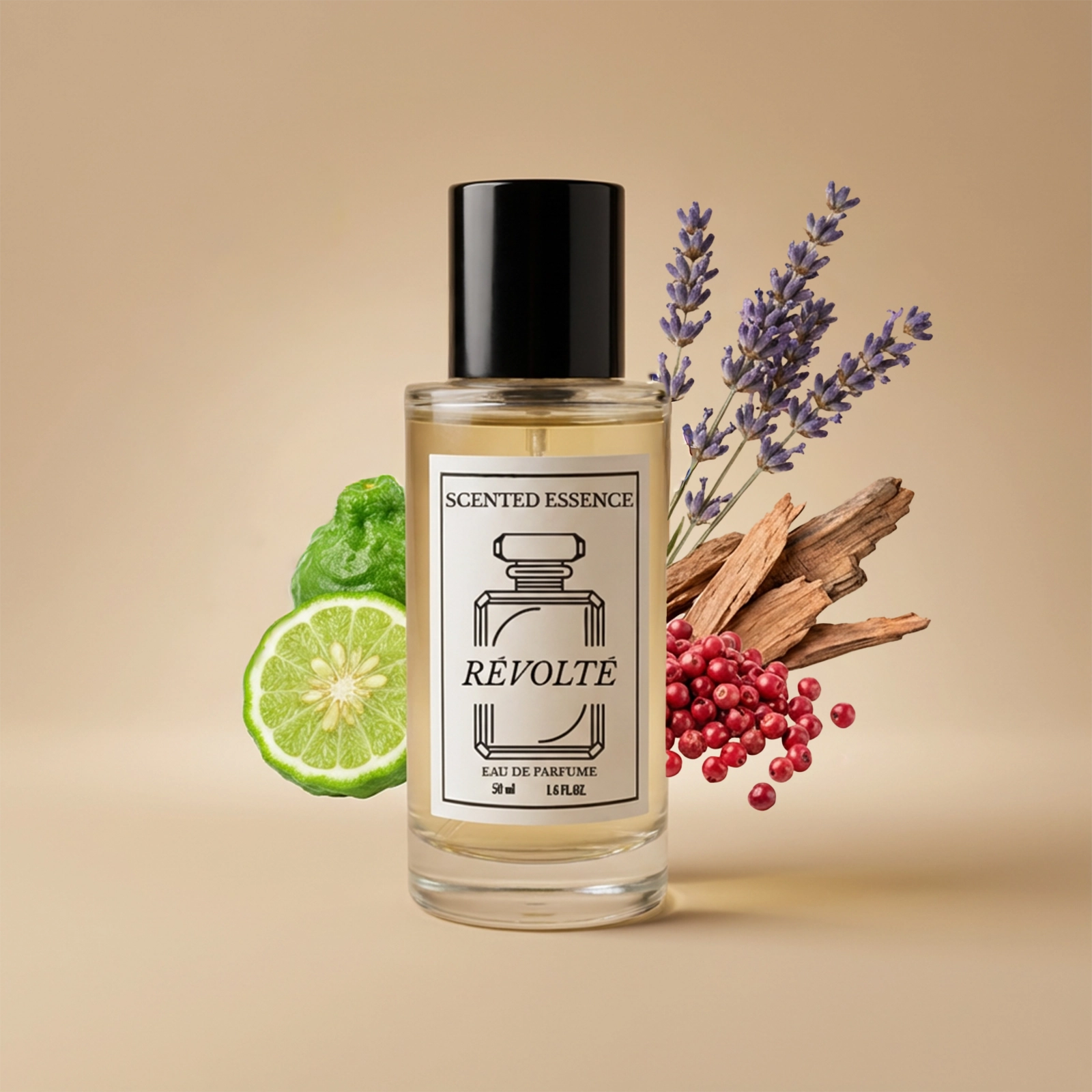 Sedan tar basnoterna över och rundar av helheten. Ambroxan ger parfymen modern värme och lång hållbarhet. Cederträ tillför torr elegans och tydlig maskulinitet. Labdanum bidrar med ett lätt rökigt och sensuellt djup som stannar kvar länge på huden. På så sätt får Révolté ett avslut som känns både kraftfullt och sofistikerat.